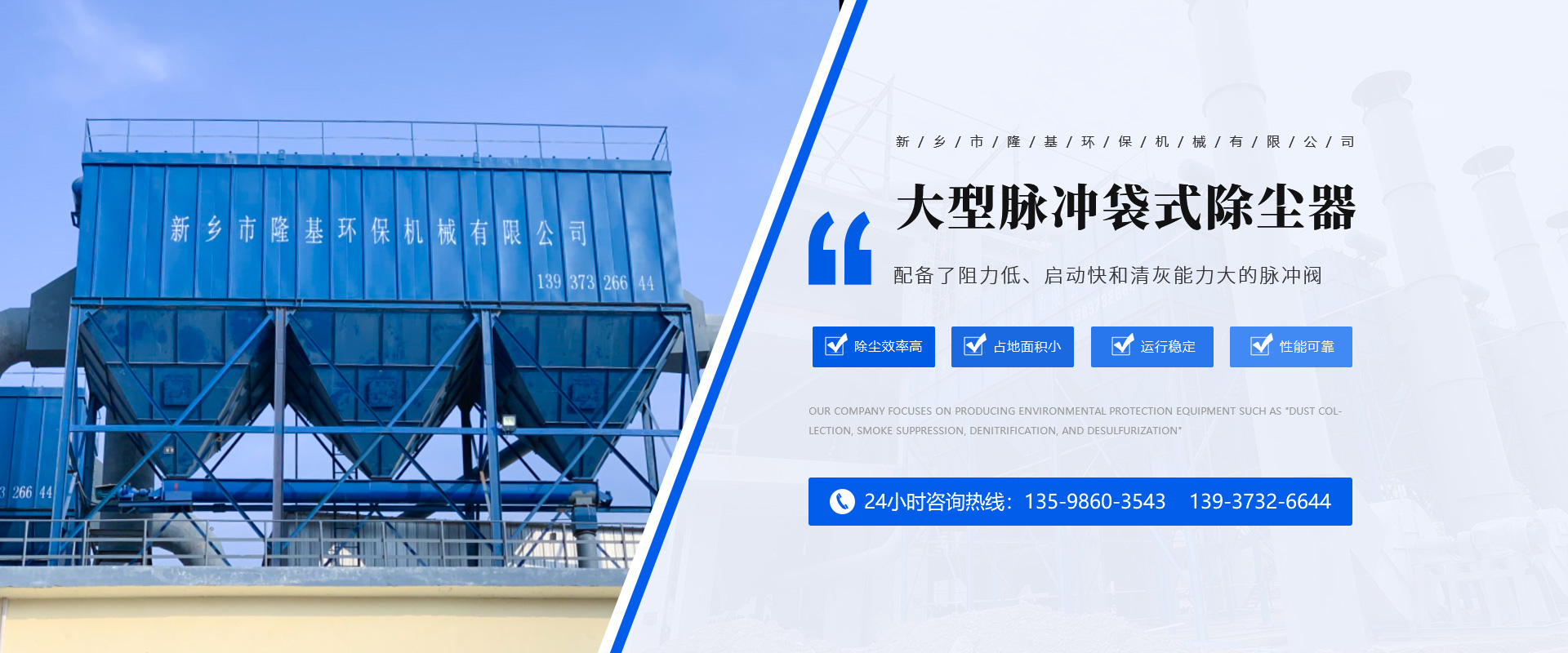 公司生產“收塵、消煙、脫硝、脫硫”等環保設備,達20多個系列、130多種規格。